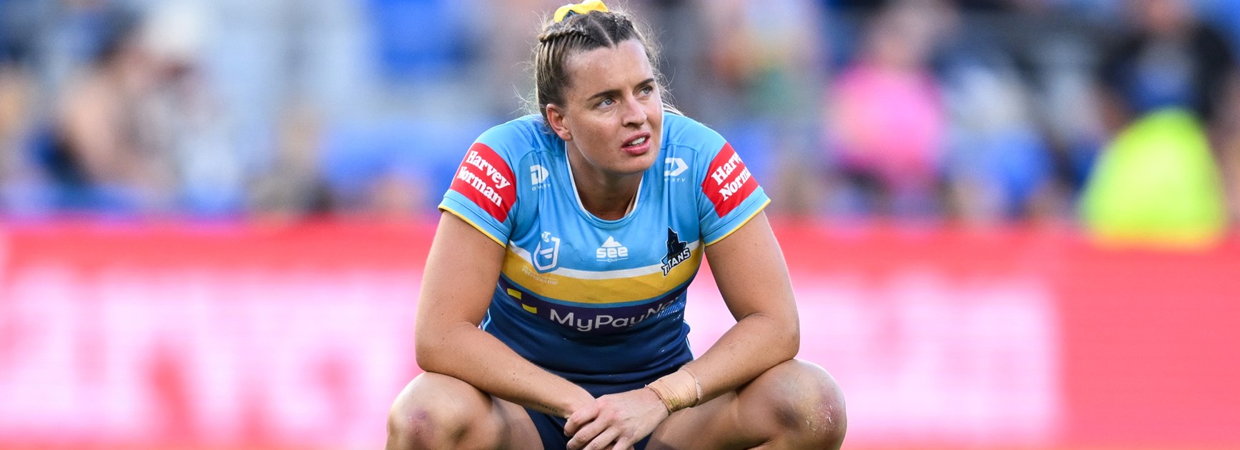 - Titans lost winger Emily Bass midway through the first half, coming off the field with a shoulder injury.